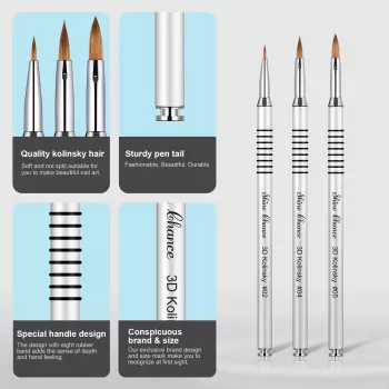 3Pcs Professional Acrylic Nail Brush Set for 3D Nail Art & Acrylic Powder