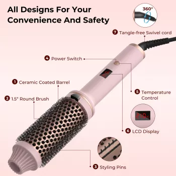 Thermal Curling Iron Brush Ceramic Hot Brush for Loose & Voluminous Curls