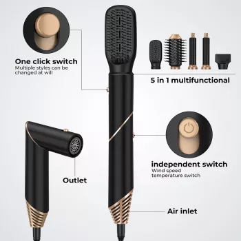 5-in-1 High-Speed Hair Dryer Brush with Automatic Curling Iron