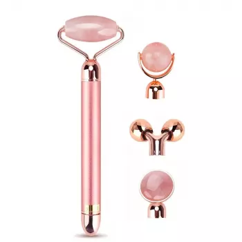 Electric 4-in-1 Vibrating Rose Quartz Facial & Body Massager Roller