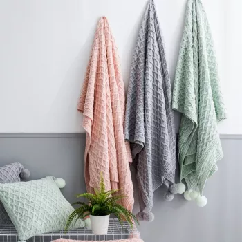 Throw Travel Blanket Sofa Throw Blanket Knitted Green Pink Grey Pom pom Ball Air Condition Blanket Diamond Acrylic 130x160cm