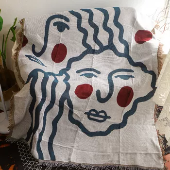 Abstract Line Art Throw Blanket – Soft Cotton Blend Tapestry, 51 x 71 inches
