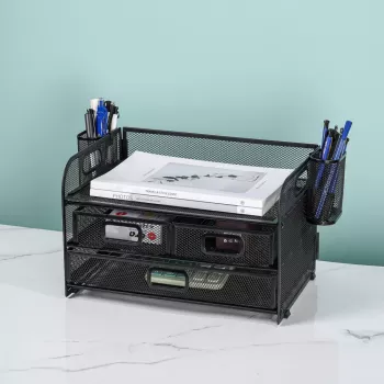 Efficient Mesh Desk Organizer with 3 Drawers and Pen Holders