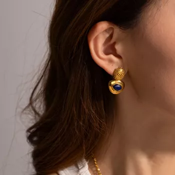 Chic 18K Gold Plated Minimalist Triangle Stud Earrings with Lapis Lazuli