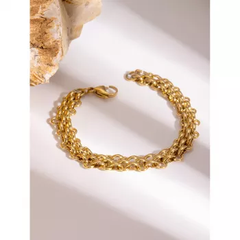18K Gold Plated Heavy Duty Ring Clasp Braided Bracelet