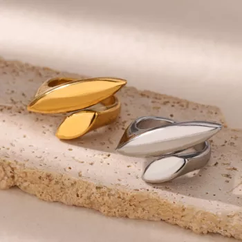Wide Leaf Vintage Stainless Steel Ring for Women – Elegant Plant-Inspired Jewelry