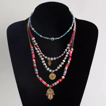 Y2K Imitation Pearls Choker with Punk Bear Layered Pendant for Men and Women