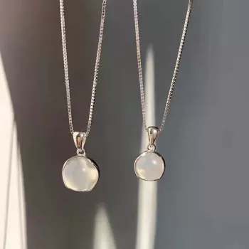 Luxury White Moonstone Pendant Necklace: Vintage Round Design in Silver Plating