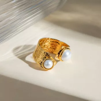 18K Gold-Plated Twisty Open Ring with Pearl Inlay