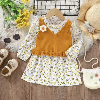 Baby Dress Set – Knit Floral Vest + Skirt 2PC Outfit for Infant Girls