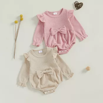 Newborn Baby Girls Long Sleeve Bowknot Romper for Spring & Fall Daily Wear