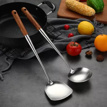 Stainless Steel Kitchen Tool Set with Wooden Handles
