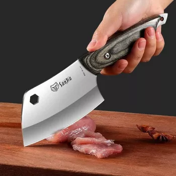 Stainless Steel Meat Cleaver & Fish Knife with Wooden Handle & Cover