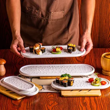 Oval White Textured Ceramic Sushi & Dessert Plate