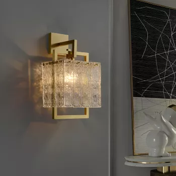 Minimalist Crystal Copper Square Wall Lamp for Living Room and Bedroom