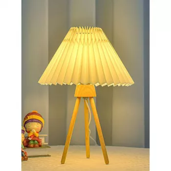 Wood USB Table Lamp with Adjustable Brightness for Bedside and Desk
