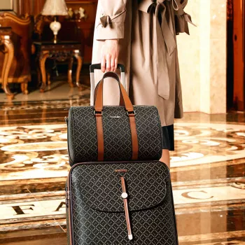 Vintage-Style PU Leather Trolley Suitcase Set for Women
