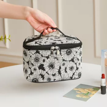Large Capacity Floral Cosmetic Bag with Double Zipper
