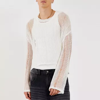 Trendy Men’s Mesh Knit Shirt – Sexy Transparent Summer Cardigan with Buttoned Lapel