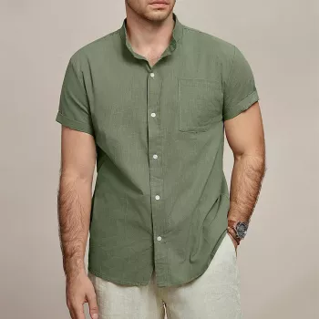Vintage Solid Color Stand Collar Short Sleeve Casual Shirt for Men