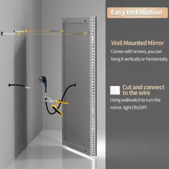 47×24 Inch LED Lighted Vanity Mirror with Backlit, Anti-Fog & Dimmable 3-Color Function