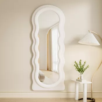 Arched Top Full Body Mirror with Lights and Wavy Flannel Frame