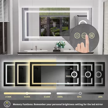 Modern Frameless LED Lighted Bathroom Mirror with 3X Magnifying Feature & 3 Color Lighting