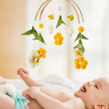 Wooden Baby Crib Mobile with Musical Bee Rattles for Newborns & Toddlers