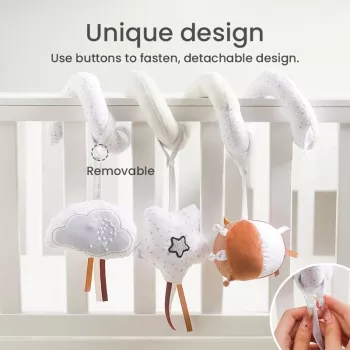 Baby Wooden Bed Bell Rattle – Soft Felt Spaceman Crib Mobile for Newborns