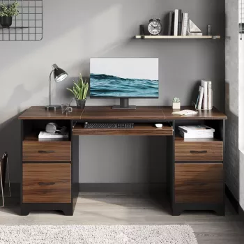 Office Desk with 4 Drawers, File Storage, and Keyboard Tray