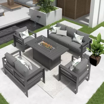 Aluminum Patio Furniture Set with Fire Pit Table, 5-Piece Outdoor Set