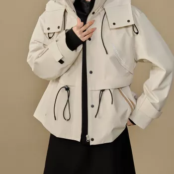 Lightweight Hooded Short Down Coat and Thick Khaki Two-Piece Set for Women