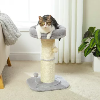 Flower Cat Scratching Post with Super Thick Sisal Post and Removable Perch Mat