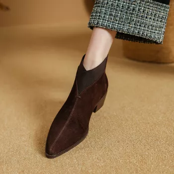 Autumn & Winter Classic Pointed Toe Chelsea Boots for Women – Suede Wedge Heel Ankle Boots