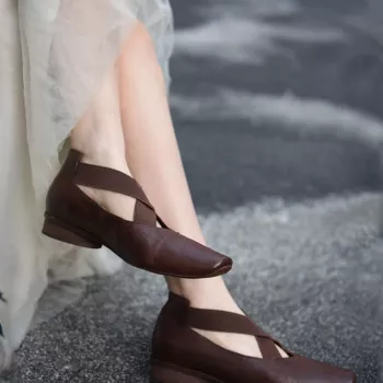 Women’s Genuine Leather Cross Band Loafers with Thick Low Heels