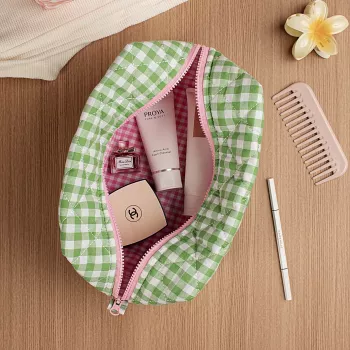 Flower Printed Puffy Zipper Cosmetic Bag – Large Travel Makeup Organizer