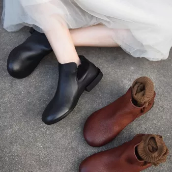 Women’s Mixed Color Genuine Leather Low Heel Ankle Boots