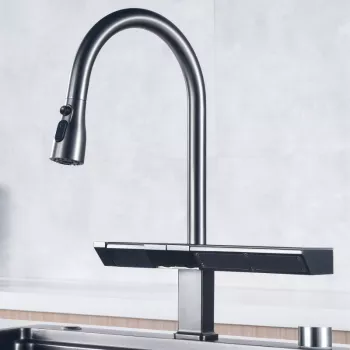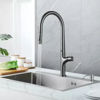 Gun Gray Brass Kitchen Faucet with Dual Control and Induction Design