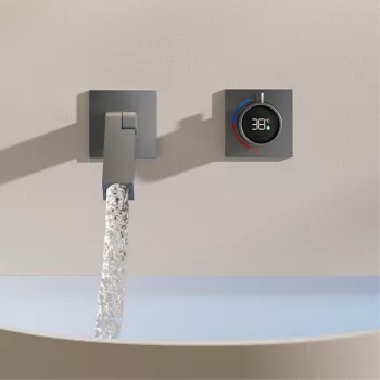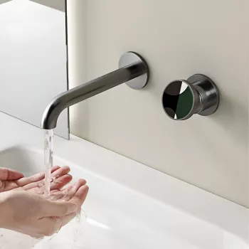 Gun Gray Brass Wall-Mounted Bathroom Faucet, Dual Control for Hot and Cold Water