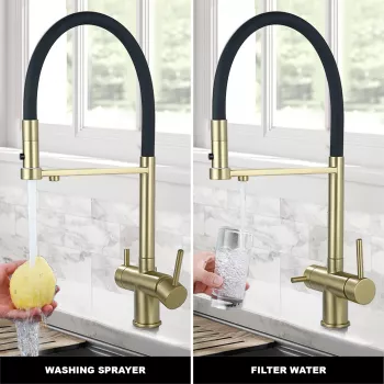 Luxury Brushed Gold Kitchen Faucet with Pull-Out Design, Single Handle, Dual Control