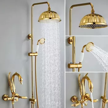Bathroom Shower Faucet Set Gold Swan Rainfall Shower Mixer
