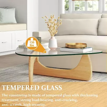 Minimalist Modern Glass Coffee Table with Solid Wood Legs
