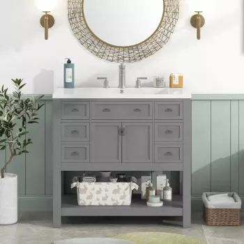 36-Inch Modern Grey Bathroom Vanity with Sink
