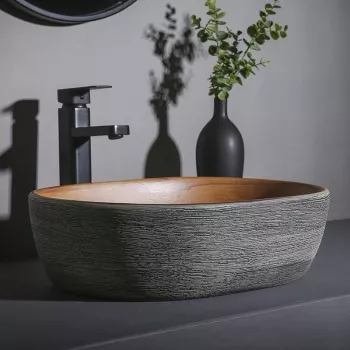 Ceramic Rectangular Vessel Sink with Blue Interior
