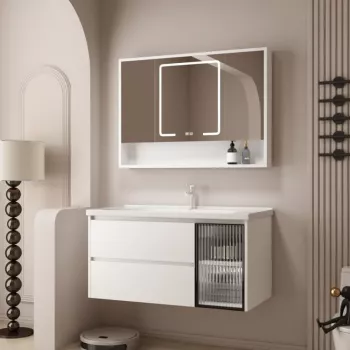 40″ Wall-Mounted Bathroom Vanity with Soft-Close Drawers and Ceramic Sink