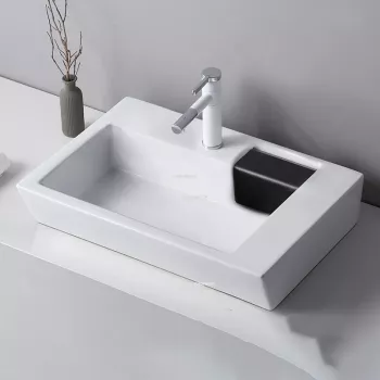 Rectangular Ceramic Countertop Bathroom Sink with Side Drain