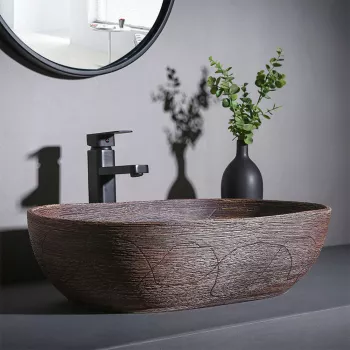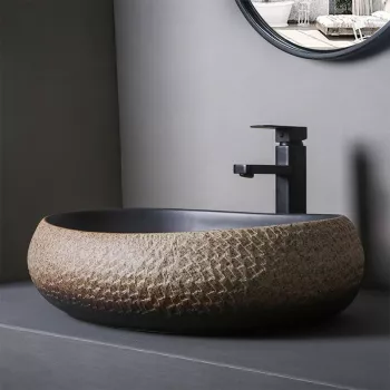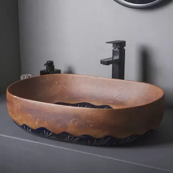 Ceramic Lotus Flower Pattern Countertop Vessel Sink for Bathroom or Balcony