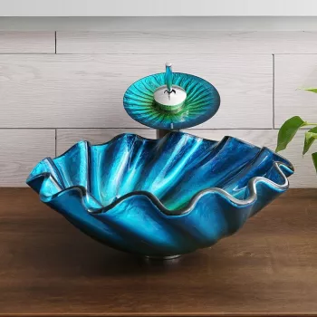 Ceramic Hand-Painted Glass Basin with Brass Set