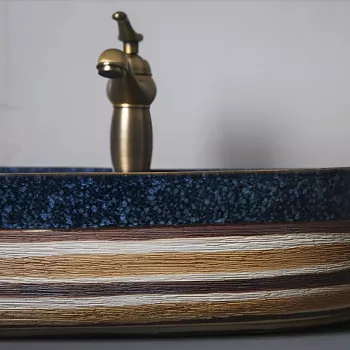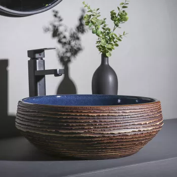 Elegant Round Navy Blue and Brown Ceramic Vessel Sink for Modern Bathrooms