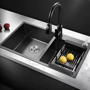 304 Stainless Steel Nano Black Kitchen Sink with Faucet and Drain Accessories